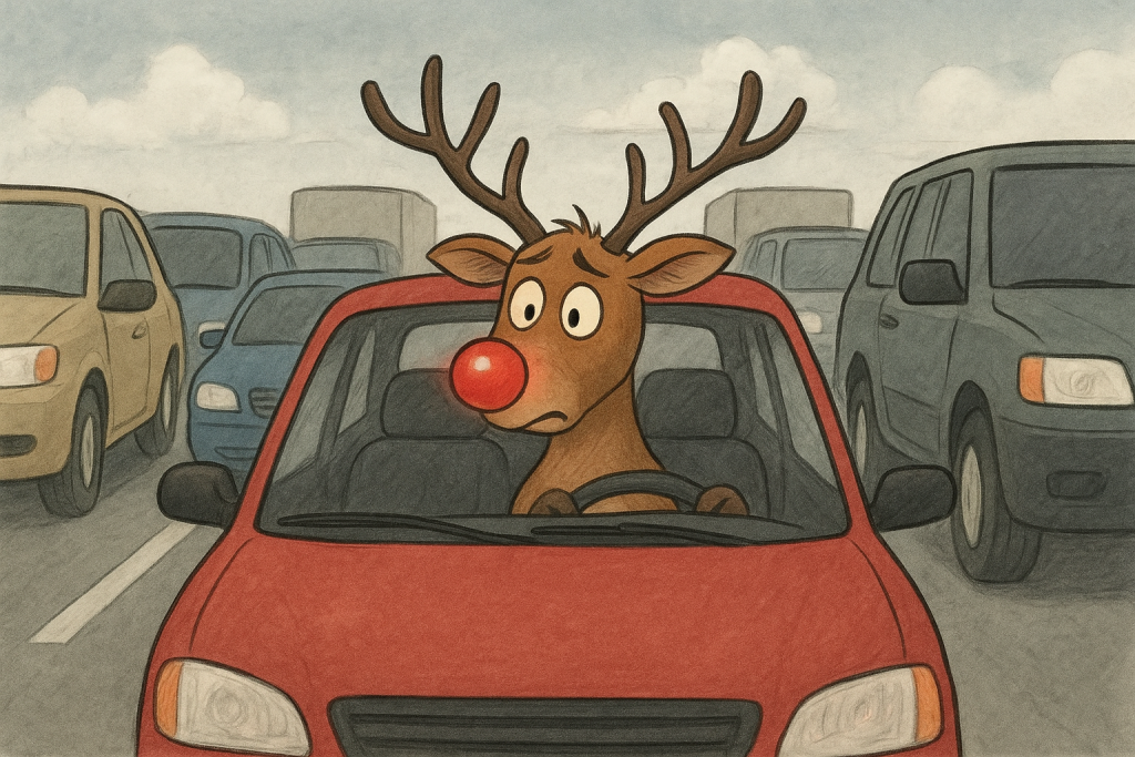 🎄🚛 Juletrafikken har nådd “kaos-nivå Rødglødende Rudolf”!